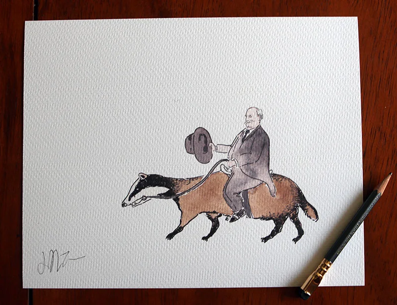I make art that reimagines American history, politics and mythology through my particular lens – from pictures of every single vice president with an octopus on his head to an increasingly baroque series of President William Taft and a badger to a drawing Ruth Bader Ginsburg.