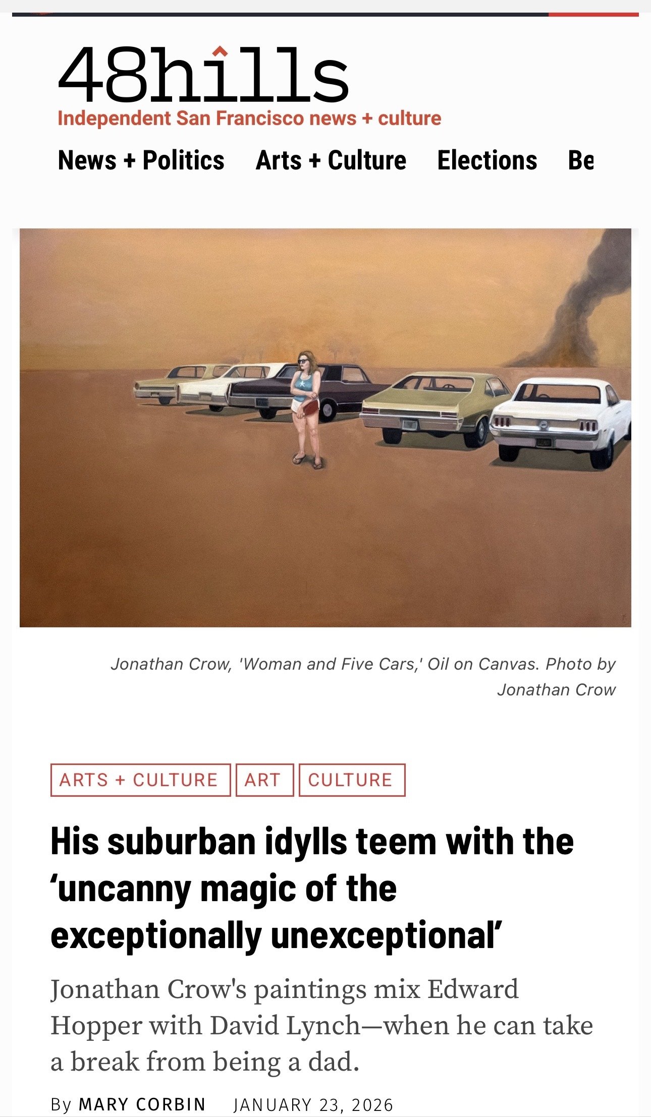 On Friday, just before the reception of my solo show Cul-de-Sac at the Triton Museum, the independent news and arts site 48 Hills SF was kind enough to post a profile of me on their website.