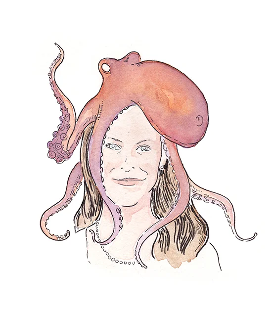 But something happens to you when you draw an animal over a hundred times -- as I did with the octopus. You get curious. So I was tickled pink that Katherine Harmon Courage -- a contributing editor to Scientific American and author of the book Octopus! The Most Mysterious Creatures of the Sea was willing to fill in some gaps in my ignorance and answer a few of my increasingly silly questions about the world’s smartest invertebrates. Since my interview, by the way, I read her book. It's informative and a lot of fun to read. Go buy multiple copies. And while you're at it, be sure to check out the Veeptopus store on Etsy.