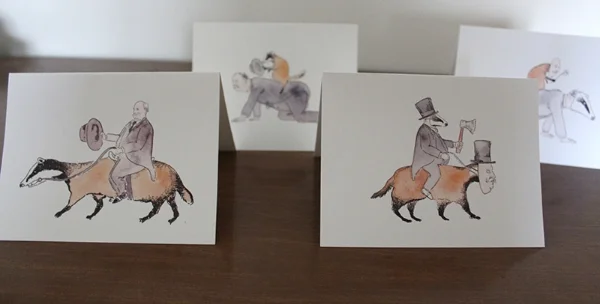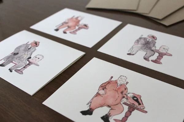 And here is the second series, Taft in a badger suit, a badger in a Taft suit and then two more weirdly existential complications of that general theme. Both Taft/Badger card sets come with envelopes. $15.