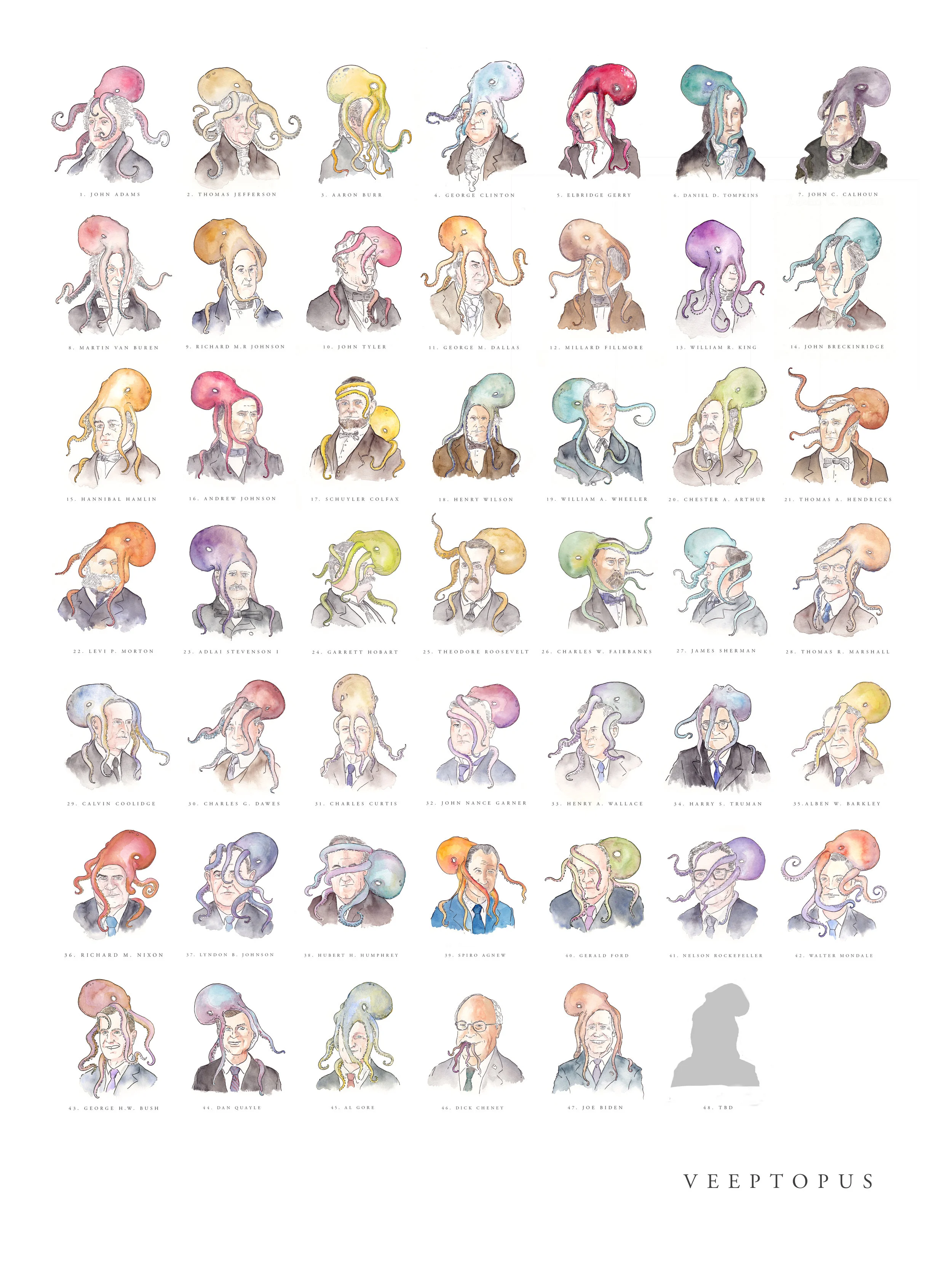 That's right! Every single vice president with an octopus on his head on one single poster, printed on thick archival paper.