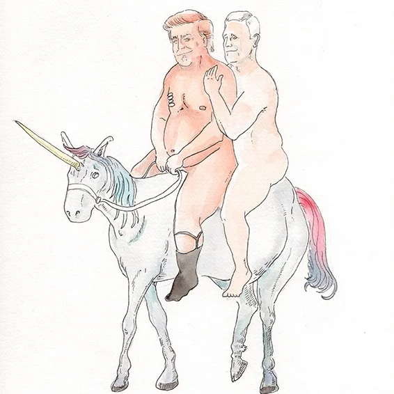 The epic clusterfuck of the Republican National Convention is over, climaxing in Trump's harrowing speech which no doubt sounded better in its original German. I found the whole thing to be both frightening and dispiriting. Above is how I dealt with the stress. You might have a beer or three, devour a tub of ice cream. I draw naked pictures of politicians.