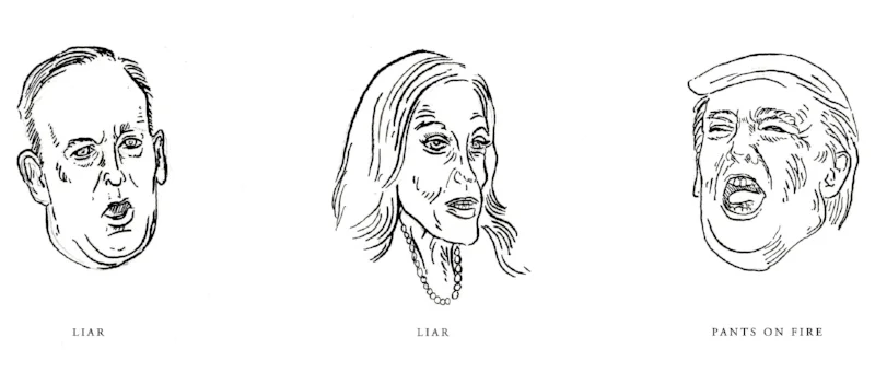 But since the election, that responsibility has been weighing on me. We have a president who, along with his mendacious minions, spouts utter lies every goddamned day. The political implications are, if you read history, terrifying. So I've been drawing work that clear and unsubtle.