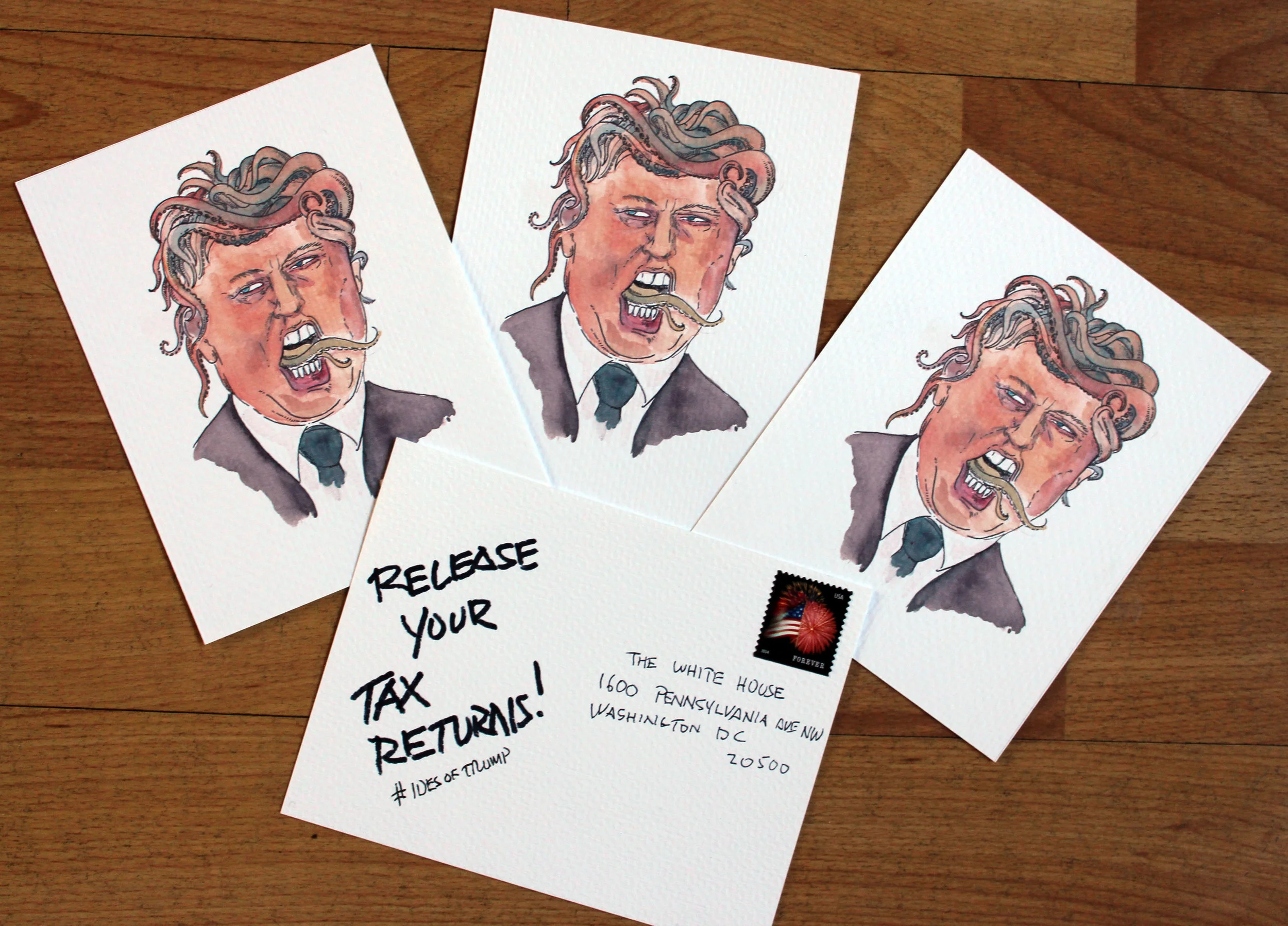 So for the next two weeks, I'm going to let you, Veeptopus nation, download my Trumptopus image as postcards. Print it out on nice card stock. Comes four to a sheet. Write the address to the White House on it: