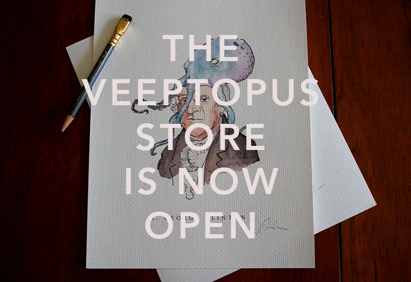 The Veeptopus store. Now with more veeps. Check it out. You'll find lots of prints of your favorite cephalopod-bedecked vice president. Impress your friends and maybe that special person in your life.
